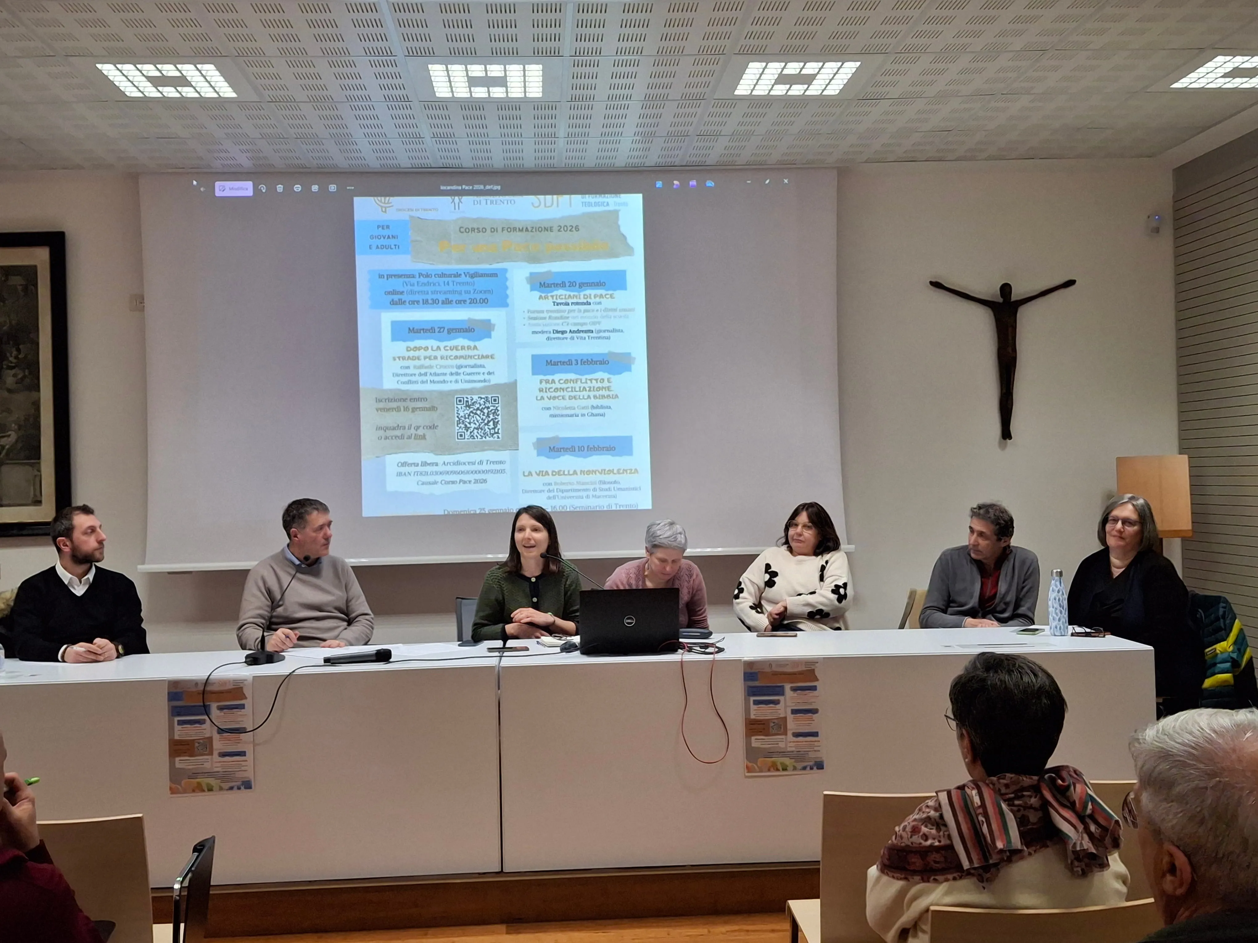 Ha preso avvio a Trento il percorso di formazione dal titolo: "Per una pace possibile", promosso da Azione cattolica e Scuola diocesana di formazione teologica. Il primo dei 4 incontri previsti si è svolto il 20 gennaio 2026 ed era intitolato: "Artigiani di pace". Nella sala del Vigilianum era presente una trentina di persone, tra cui pochissimi giovani. Altre persone partecipavano in collegamento da remoto.