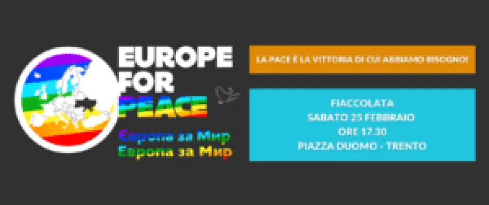 Anche in Trentino varie realtà si sono attivate e hanno aderito all'appello della coalizione 'Europe for Peace' che invita a promuovere mobilitazioni nelle città italiane ed europee a un anno dall'invasione dell'Ucraina per chiedere il cessate il fuoco, il dialogo e i negoziati di pace per costruire un'Europa sicura e pacifica per tutti. Mostrare solidarietà al popolo ucraino e alle vittime di tutte le guerre, le violenze, le repressioni e le discriminazioni nel mondo.
